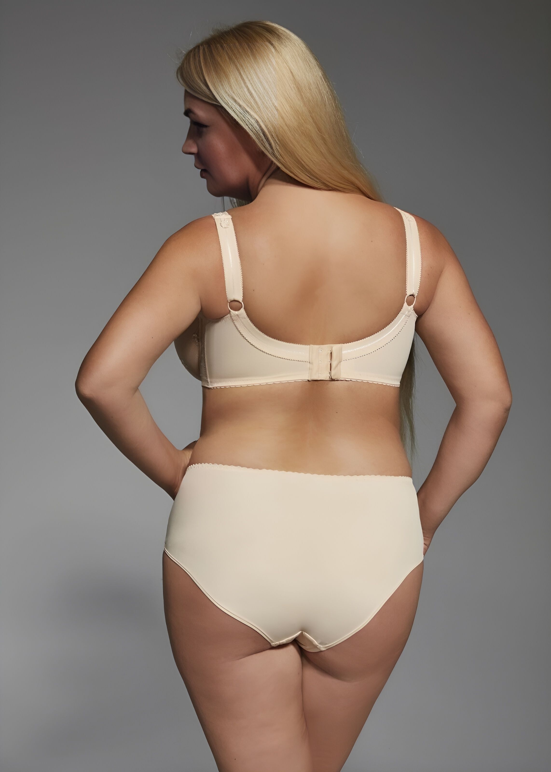 Чашки бюстгальтера литые, имеют косой крой, поэтому очень хорошо поддерживают тяжелую пышную грудь и сдвигают её к центру. Совершенно не придают дополнительно объема (ведь именно этого боятся все наши пышногрудые красотки)!