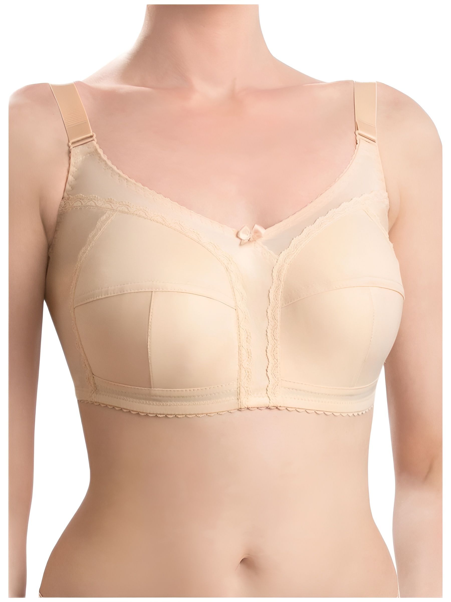 Ортопедический бюстгальтер больших размеров, размер 85G цвет телесный бежевый, из трикотажного полотна с двусторонними кармашками из хлопка для фиксации экзопротезов для женщин после мастэктомии.