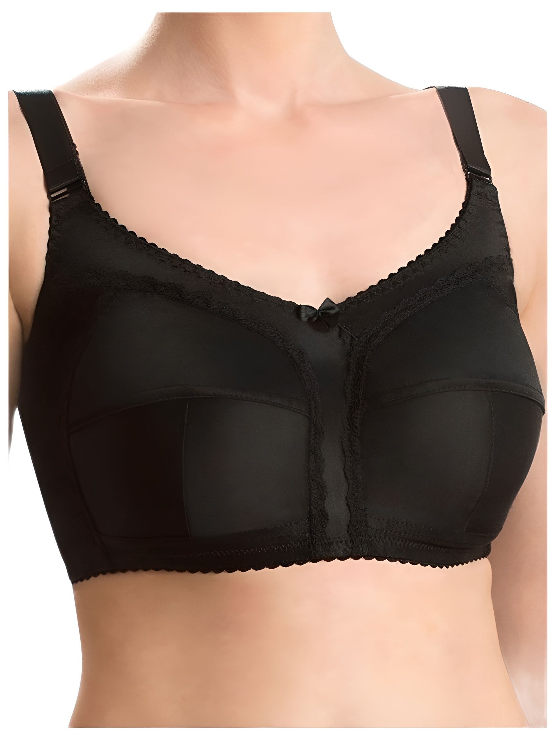 Ортопедический бюстгальтер больших размеров, размер 85H цвет черный, из трикотажного полотна с двусторонними кармашками из хлопка для фиксации экзопротезов для женщин после мастэктомии.