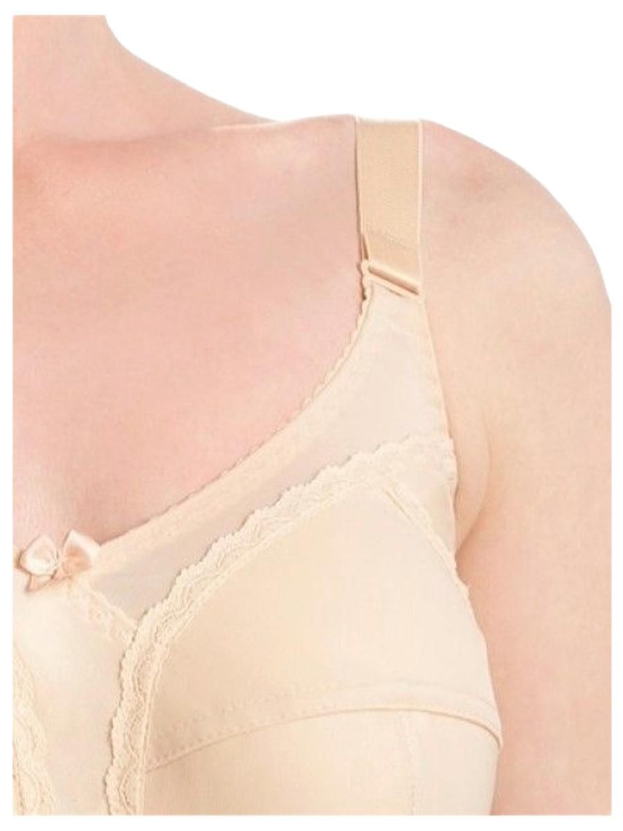 Ортопедический бюстгальтер больших размеров, размер 95H цвет телесный бежевый, из трикотажного полотна с двусторонними кармашками из хлопка для фиксации экзопротезов для женщин после мастэктомии.