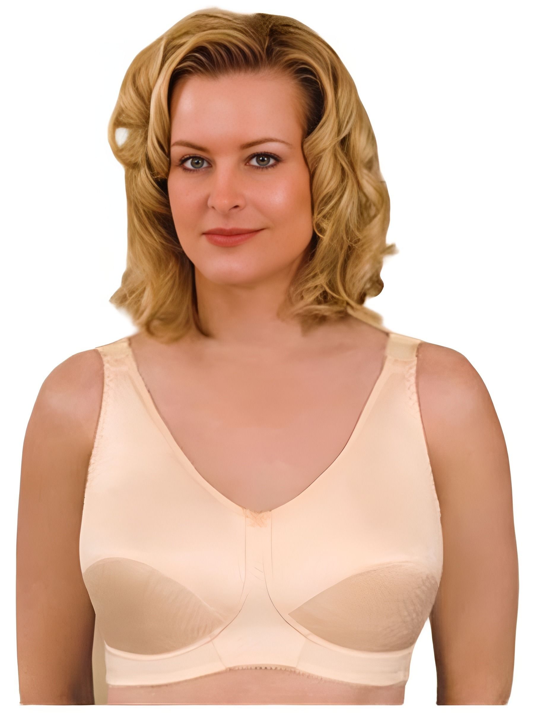 Бюстгальтер Rose разгрузочный серии Comfort, без косточек, с мягкими широкими бретелями, высокой линией декольте и проймы, плотной облегающей широкой лентой под грудью предоставляет улучшенную поддержку для больших размеров груди. Цвет бежевый, размер 95E.