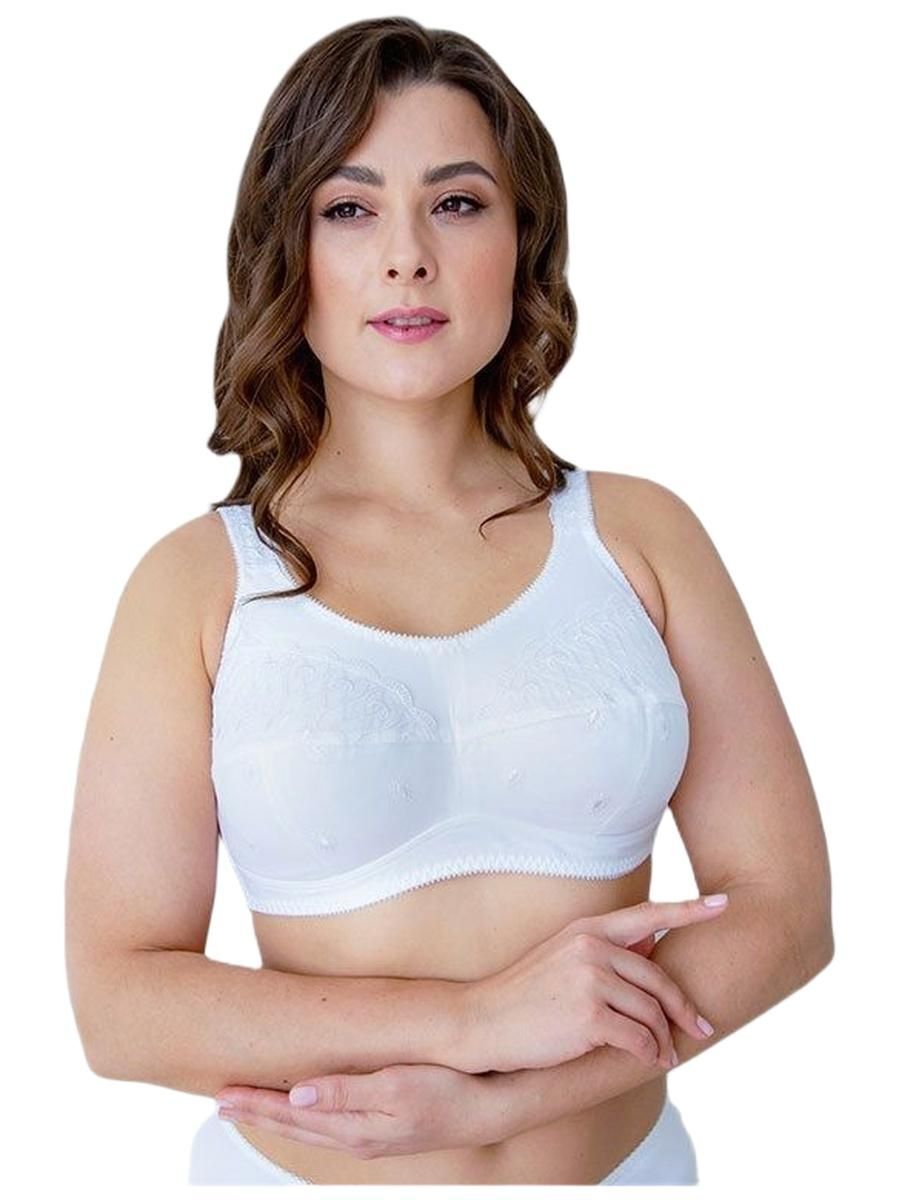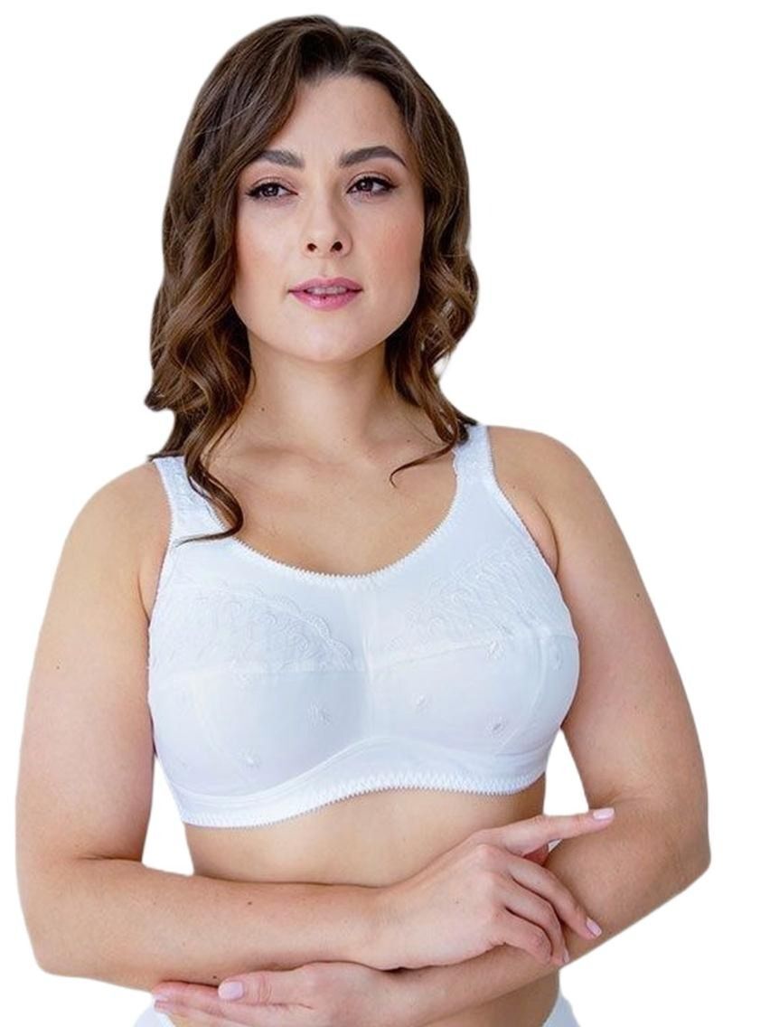 Ортопедический бюстгальтер больших размеров, цвет белый, размер 90F, с кармашками для фиксации экзопротеза или накладки молочной железы, предназначен для женщин, которые перенесли операцию на груди, и нуждаются в надежной поддержке и комфорте в восстановительный период.