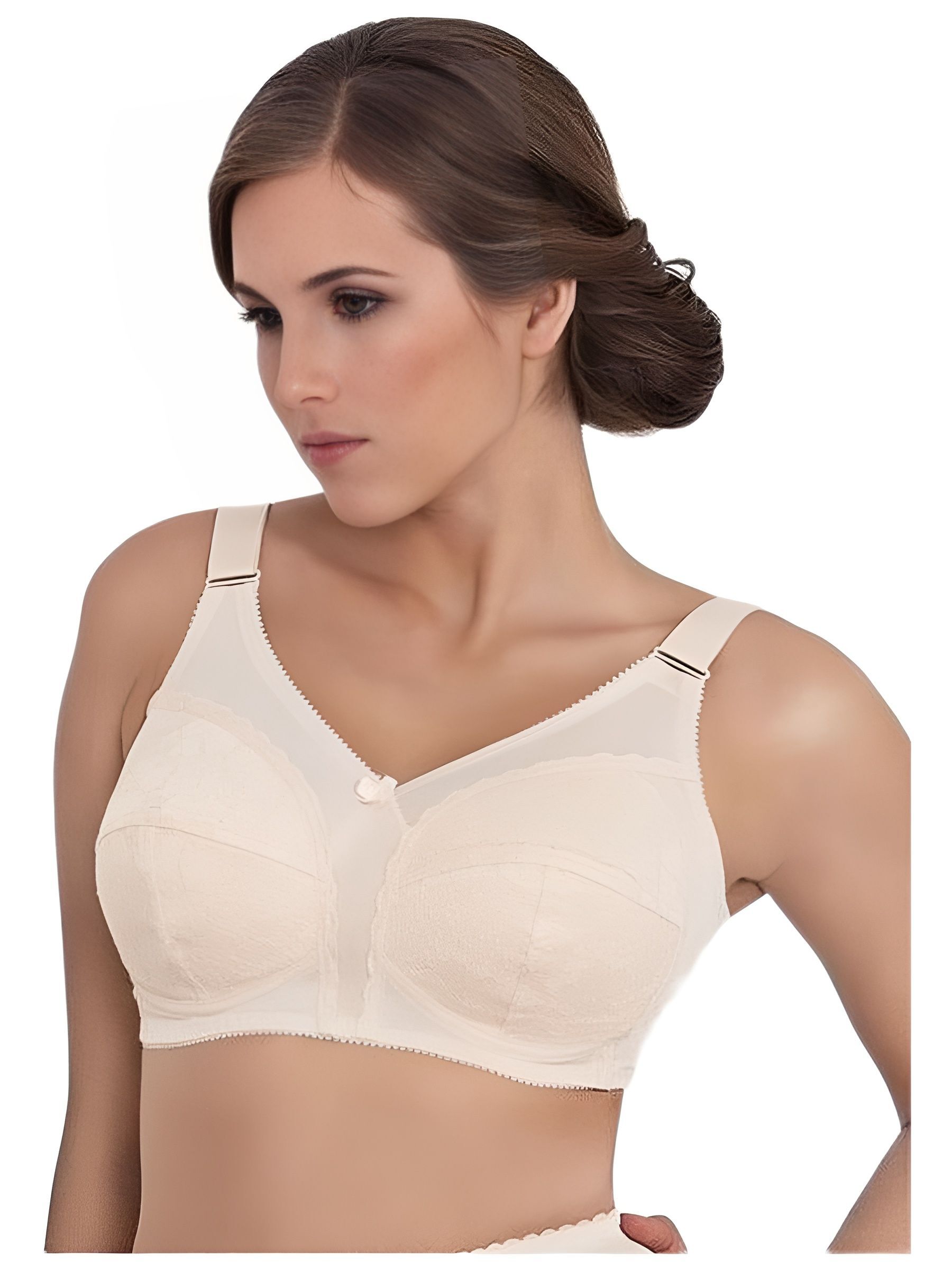 Бюстгальтер после мастэктомии имеет приятный нейтральный бежевый цвет, что делает его универсальным для ношения под любой одеждой.