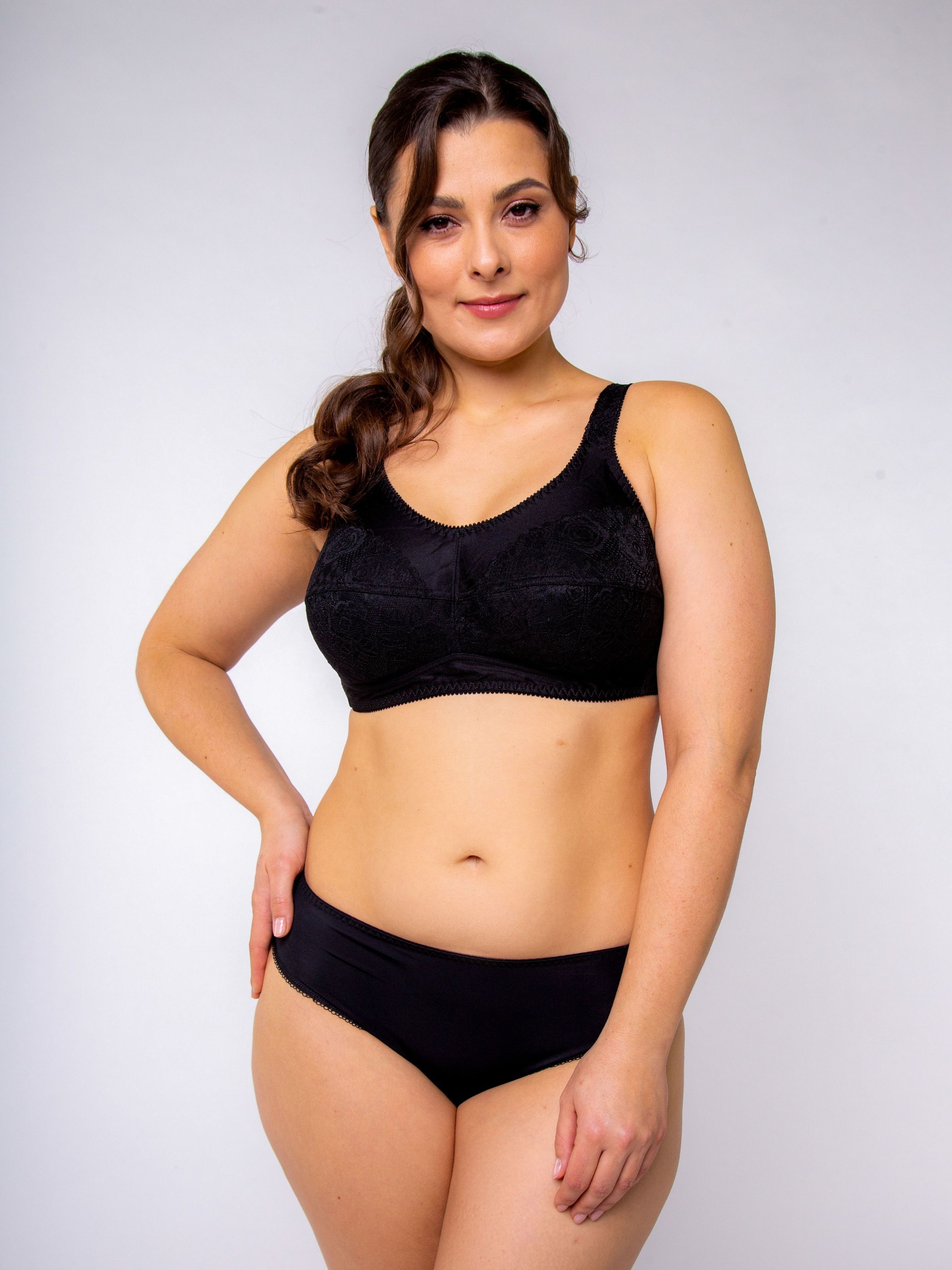 Бюстгальтер изготовлен из мягкого и приятного к телу материала, который не вызывает дискомфорта даже при длительном ношении. Со встроенными внутри втачными карманами для протеза из х/б трикотажного полотна.