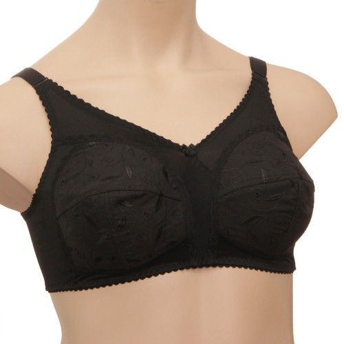 Ортопедический бюстгальтер для фиксации протеза или накладки молочной железы после мастэктомии, с двусторонними кармашками из хлопка, с завышенной линией декольте и высокой боковой проймой, застежкой сзади, выполненный в элегантном черном цвете, обхват 90 см.