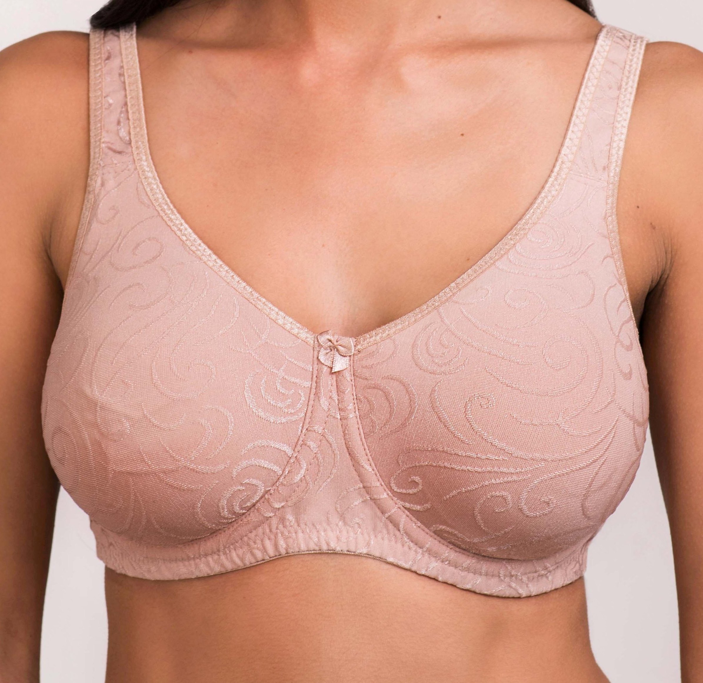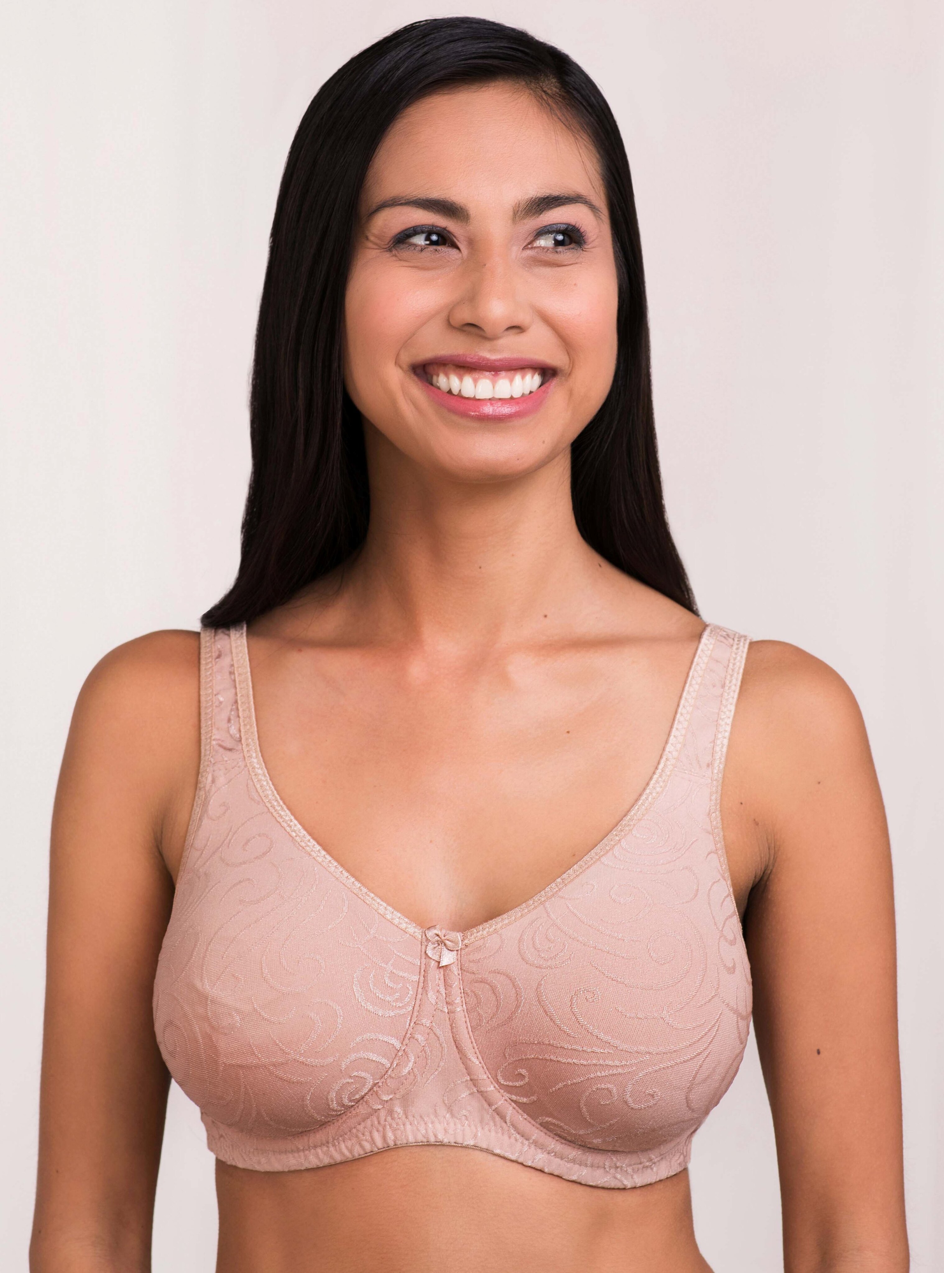 Бюстгальтер без косточек, с высоким декольте, с мягкими полноразмерными поддерживающими шовными чашками, кармашки бюстгальтера сделаны из дышащей, отводящей влагу ткани Coolmax. Бюстгальтер Jessica создает усиленную поддержку для больших размеров груди.
