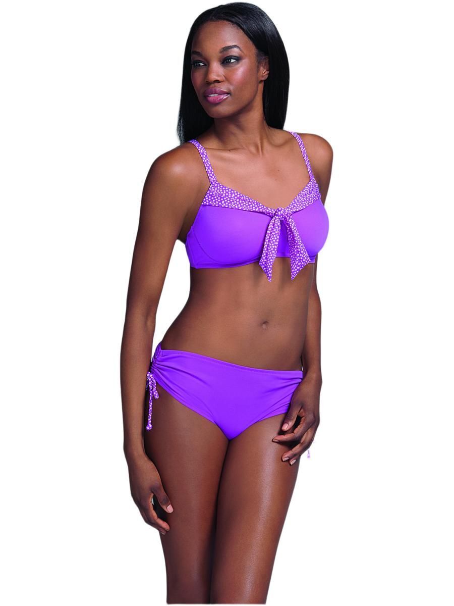 Эластичные регулируемые бретели позволяют отрегулировать зону декольте по потребности, а окантовка в горошек по вырезу декольте и изящный бантик посередине прибавляют очарование.