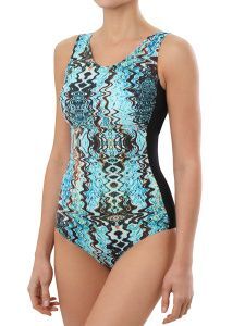 Завышенная линия декольте и высокая пройма обеспечивают комфортное использование купальника, позволяя удобно фиксировать протез без смещения.