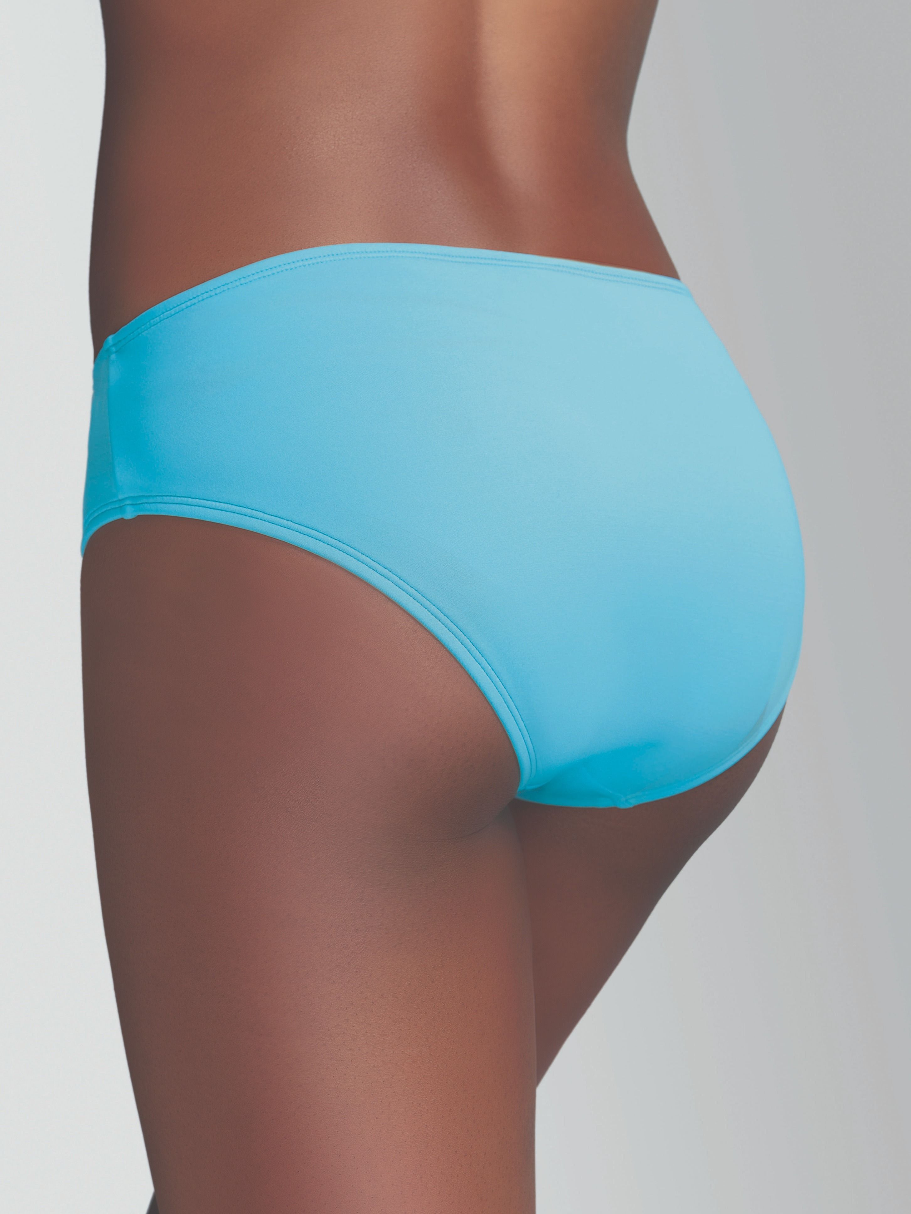 Голубые трусики Tahiti классического европейского кроя садятся идеально, придавая фигуре стройность.