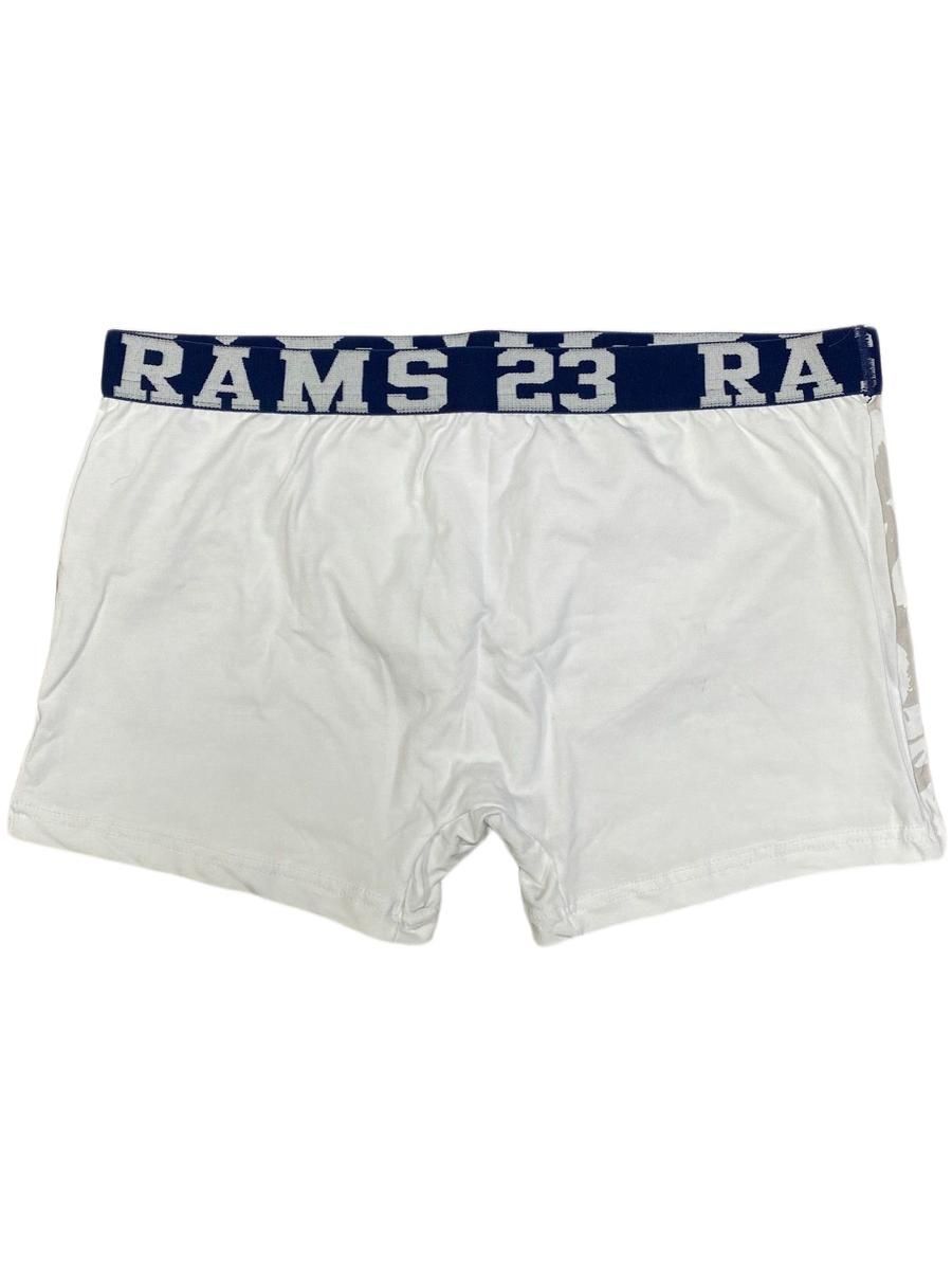 Дизайн: на эластичном поясе - широкой резинке темно-синего цвета выполнена брендовая печать белого цвета "RAMS23 PRIMAL".