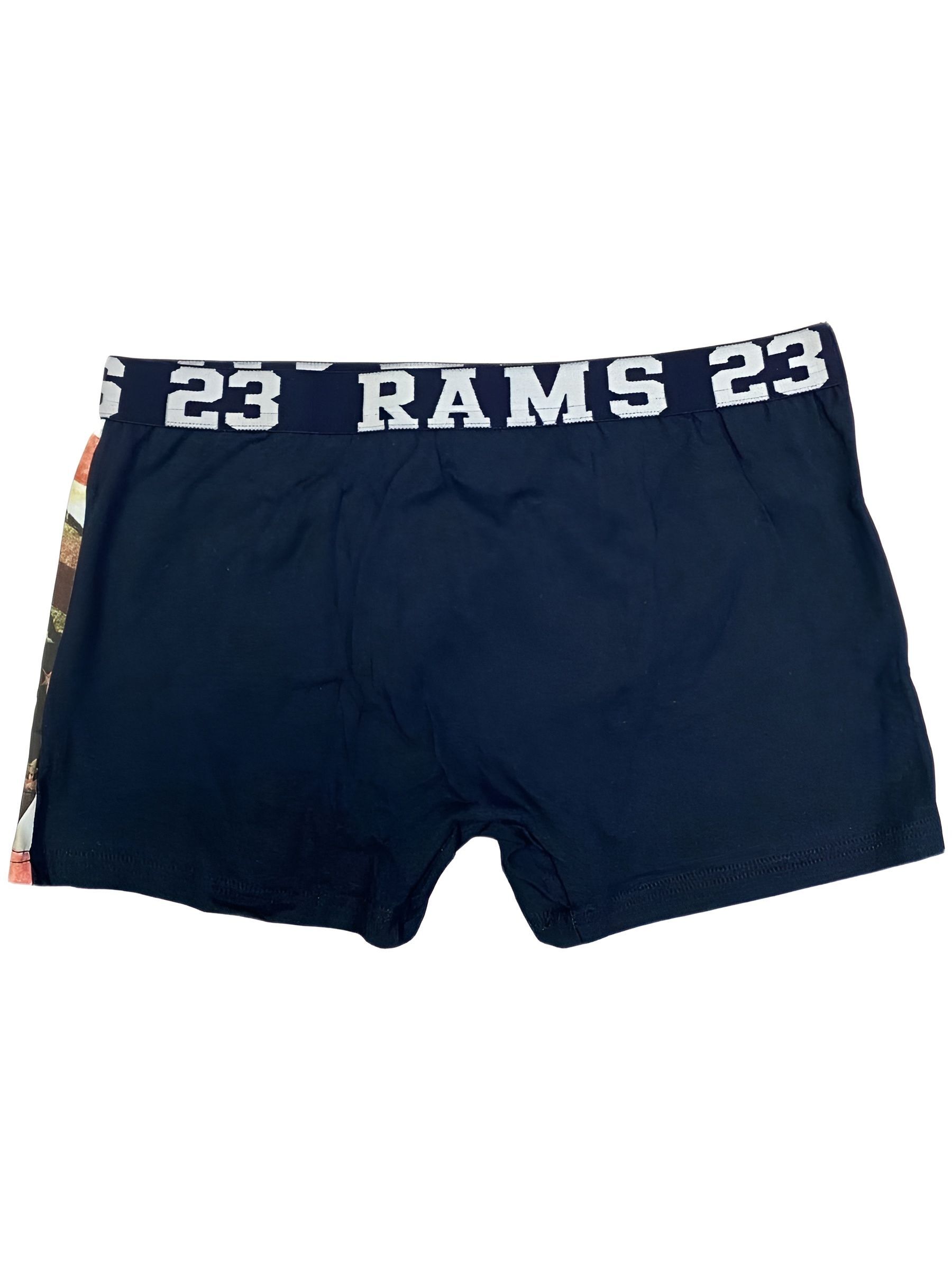 Дизайн: на эластичном поясе - широкой резинке темно-синего цвета выполнена брендовая печать белого цвета "RAMS23 PRIMAL".