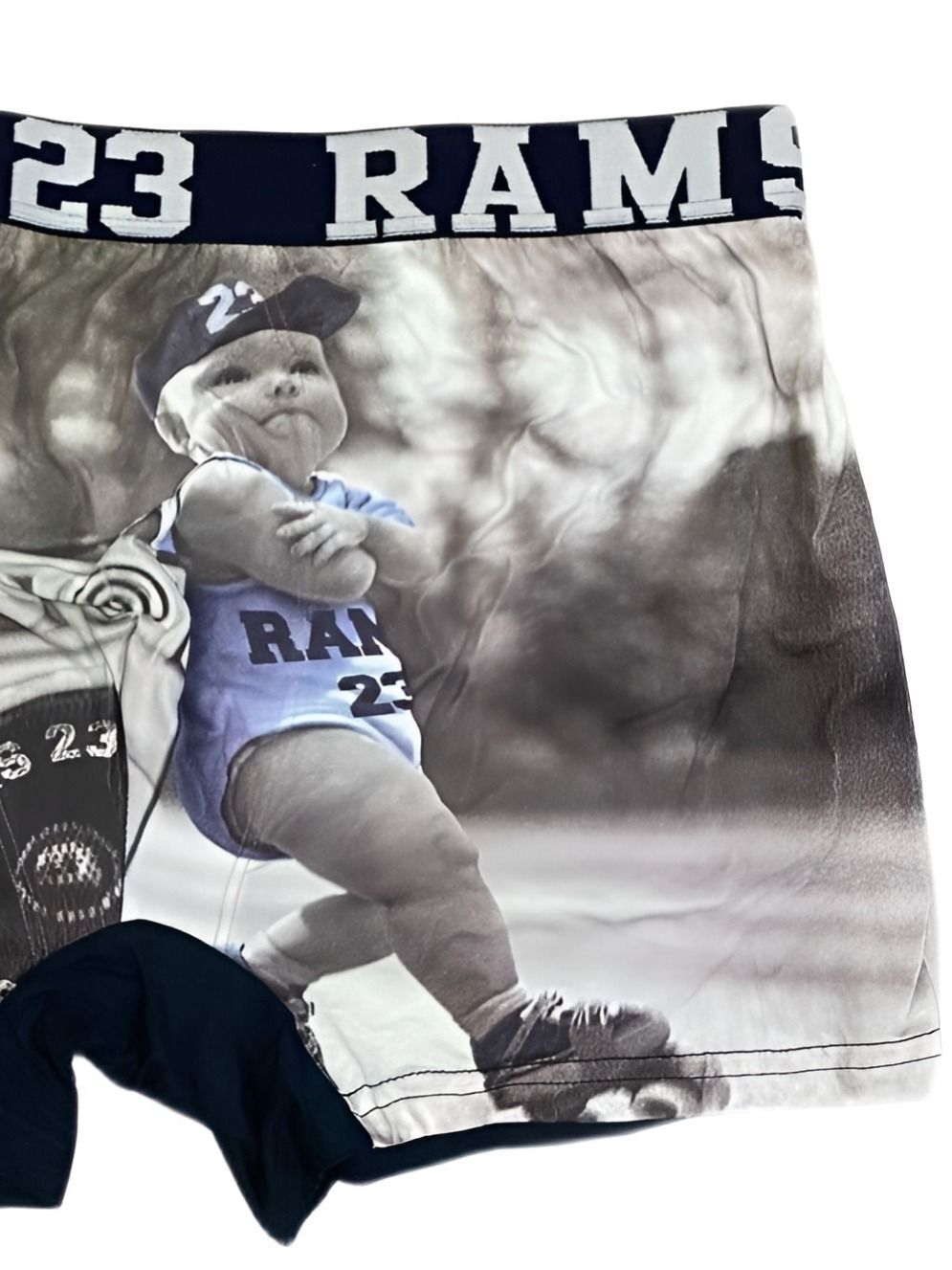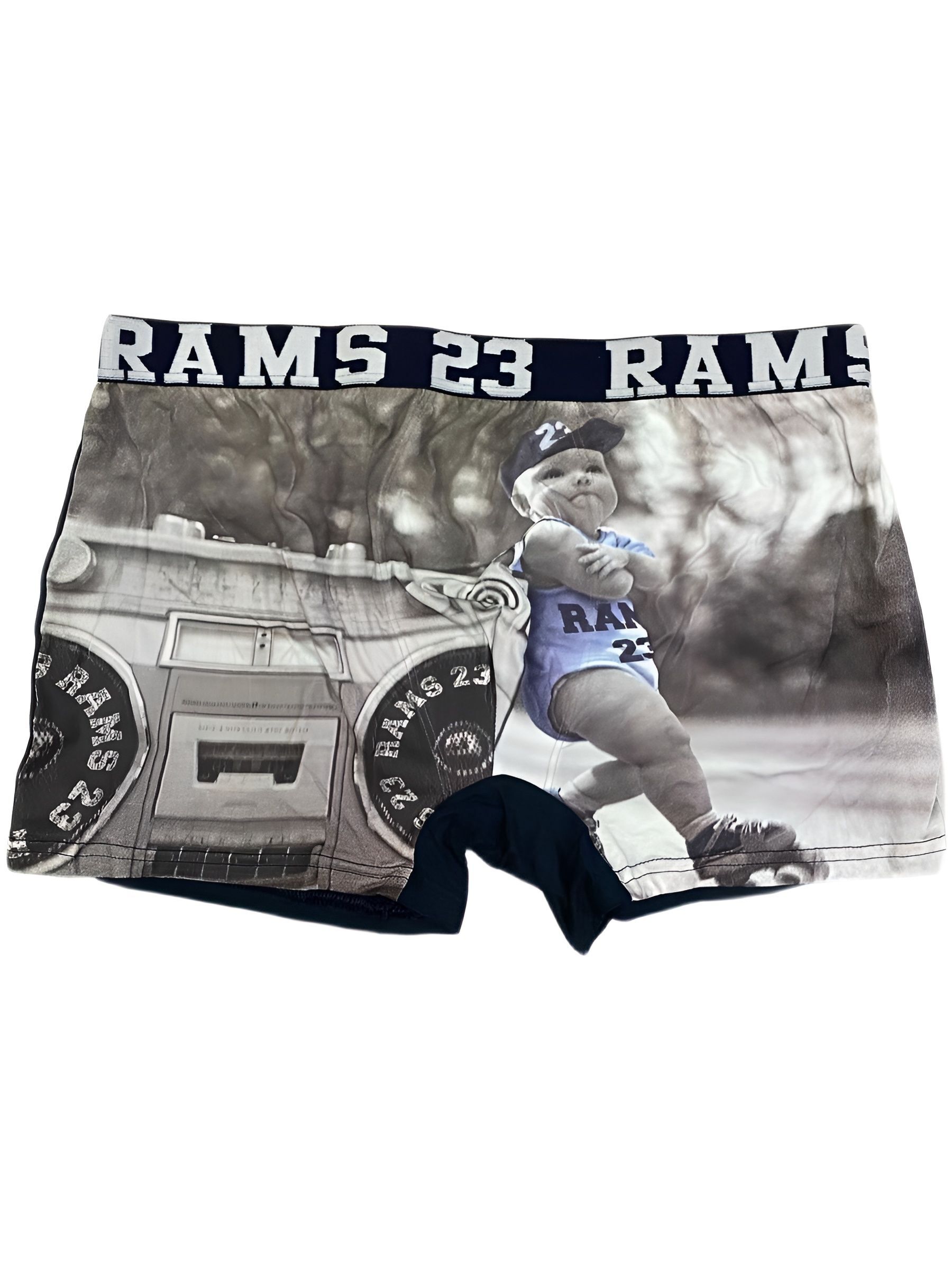 Дизайн: на эластичном поясе - широкой резинке темно-синего цвета выполнена брендовая печать белого цвета "RAMS23 PRIMAL".