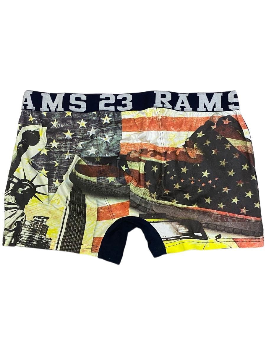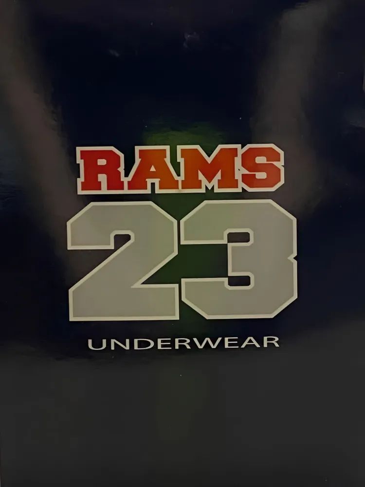 Дизайн: на эластичном поясе - широкой резинке темно-синего цвета выполнена брендовая печать белого цвета "RAMS23 PRIMAL".