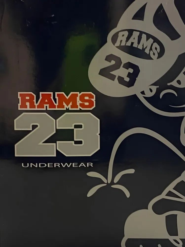 Дизайн: на эластичном поясе - широкой резинке темно-синего цвета выполнена брендовая печать белого цвета "RAMS23 PRIMAL".