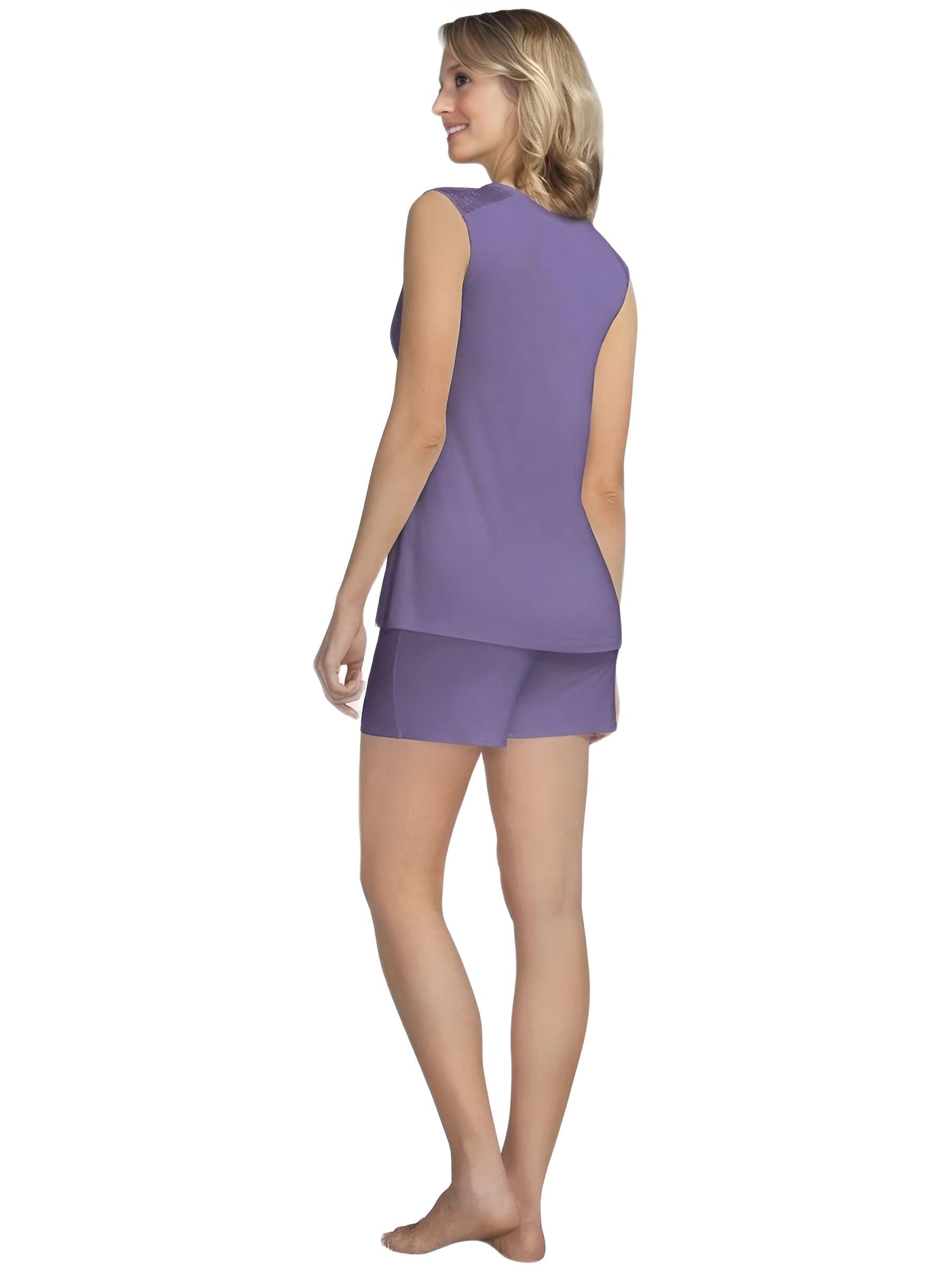 Откройте для себя уникальную ночную пижаму Daydream Set от Amoena, размер S/42-44, цвет лаванда, со встроенным лифом, и мягкими свободными шортиками.