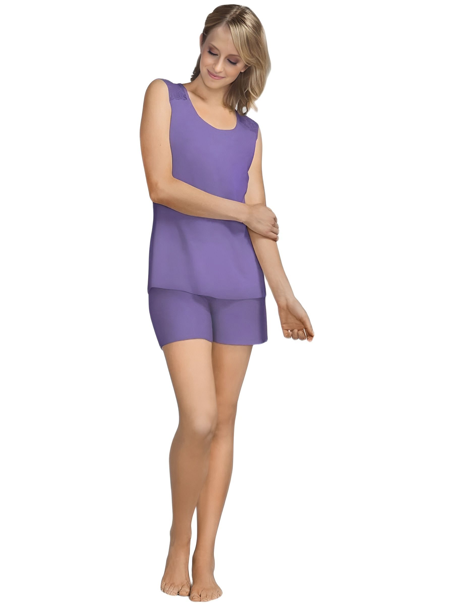 Откройте для себя уникальную ночную пижаму Daydream Set от Amoena, размер L/48-50, цвет лаванда, со встроенным лифом, и мягкими свободными шортиками.