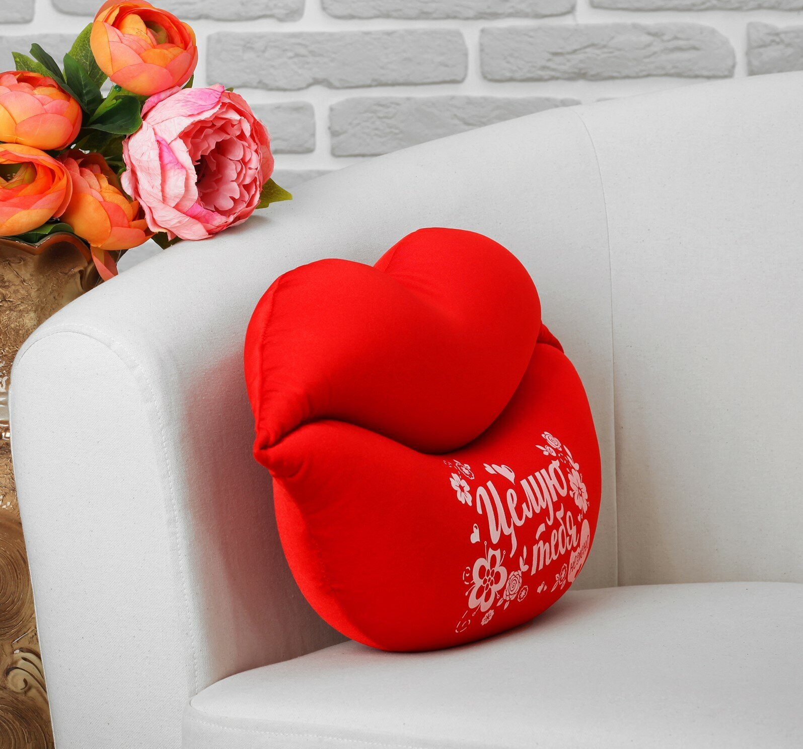 Подушка подарочная "Целую тебя нежно" Губы 47*28см - это милый, нежный и креативный подарок, который без слов расскажет о ваших чувствах.