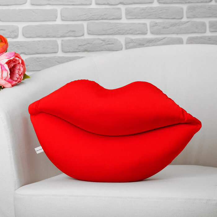 Подушка выполнена в форме алых, пылающего любовью губ, что делает ее прекрасным подарком на любой праздник, связанный с темой любви, сердца и счастья.