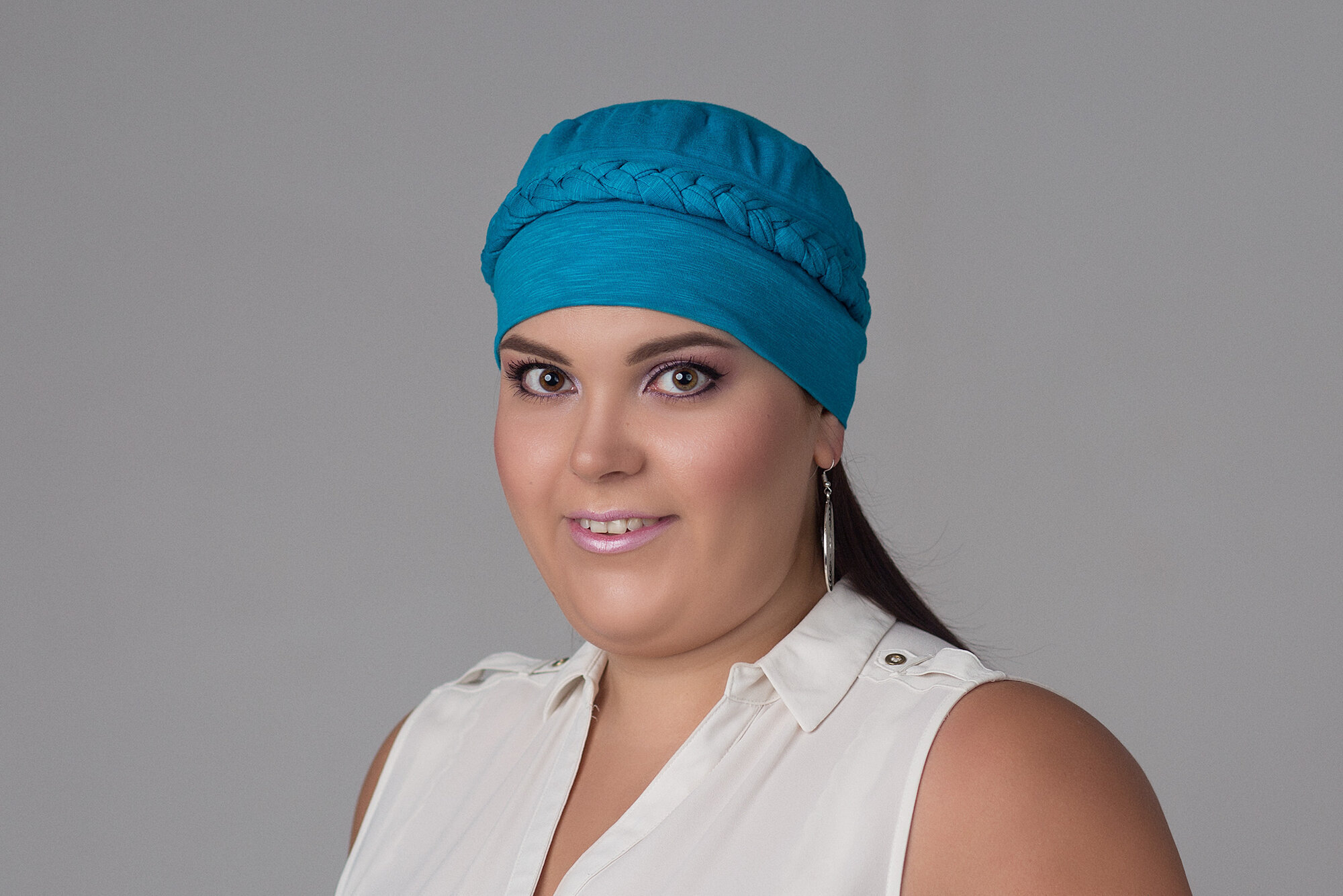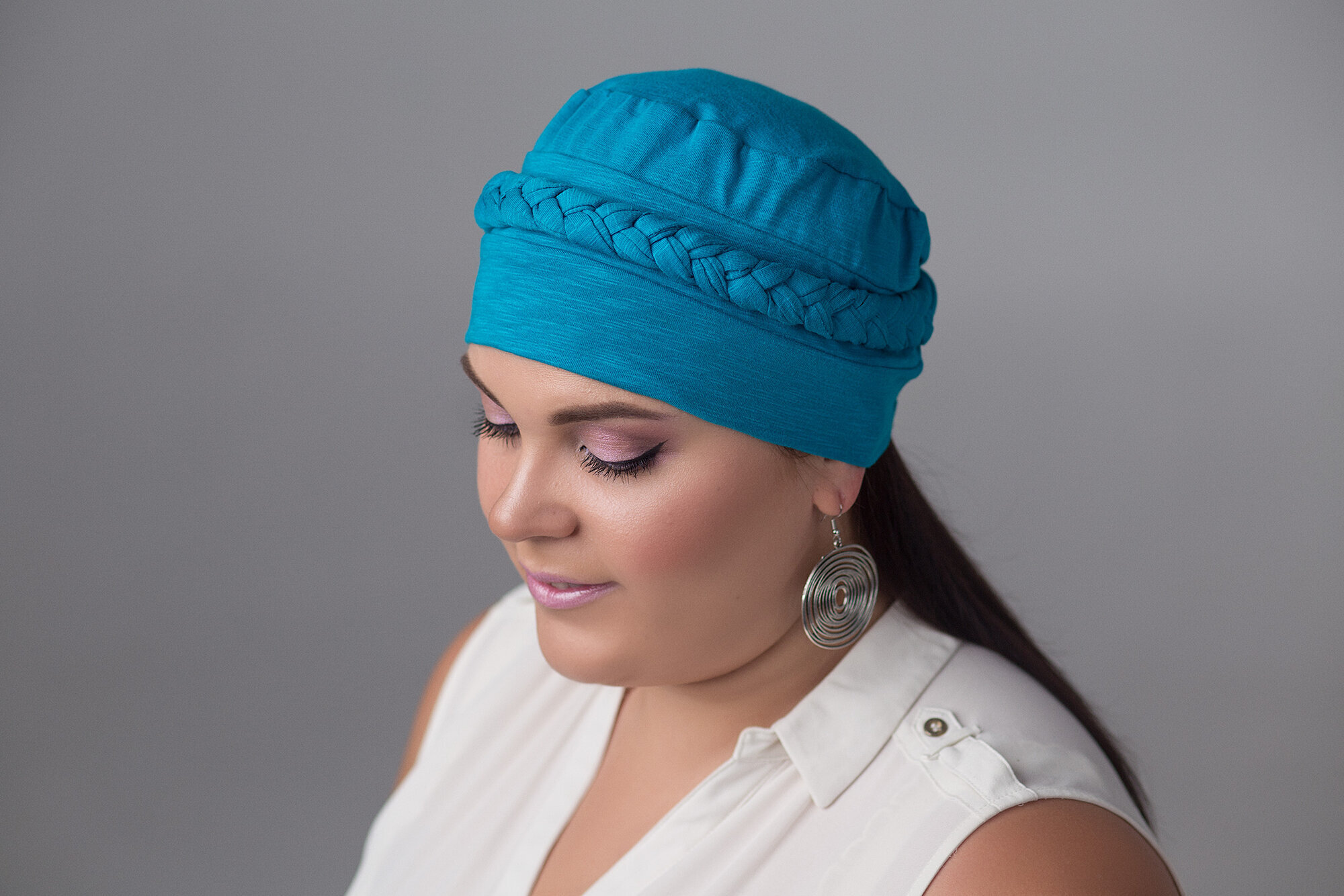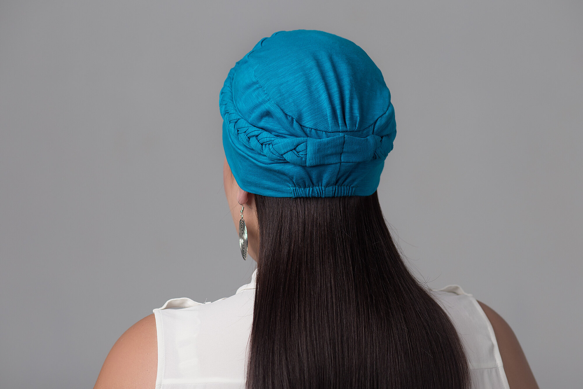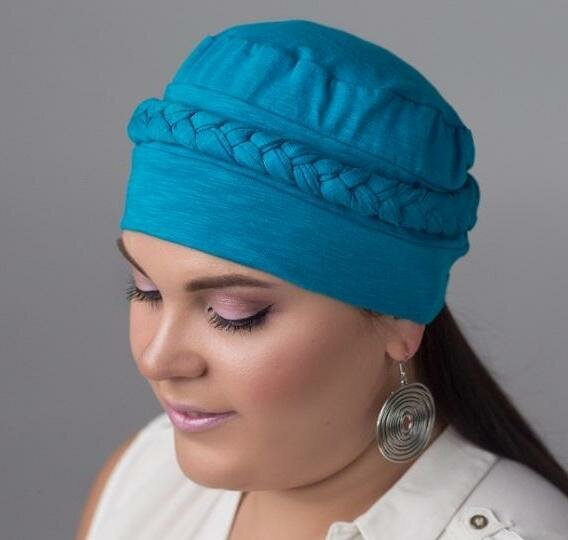 Шапочка КЛЭР с косичкой, тюрбан из хлопка, бирюза Elza Meyger