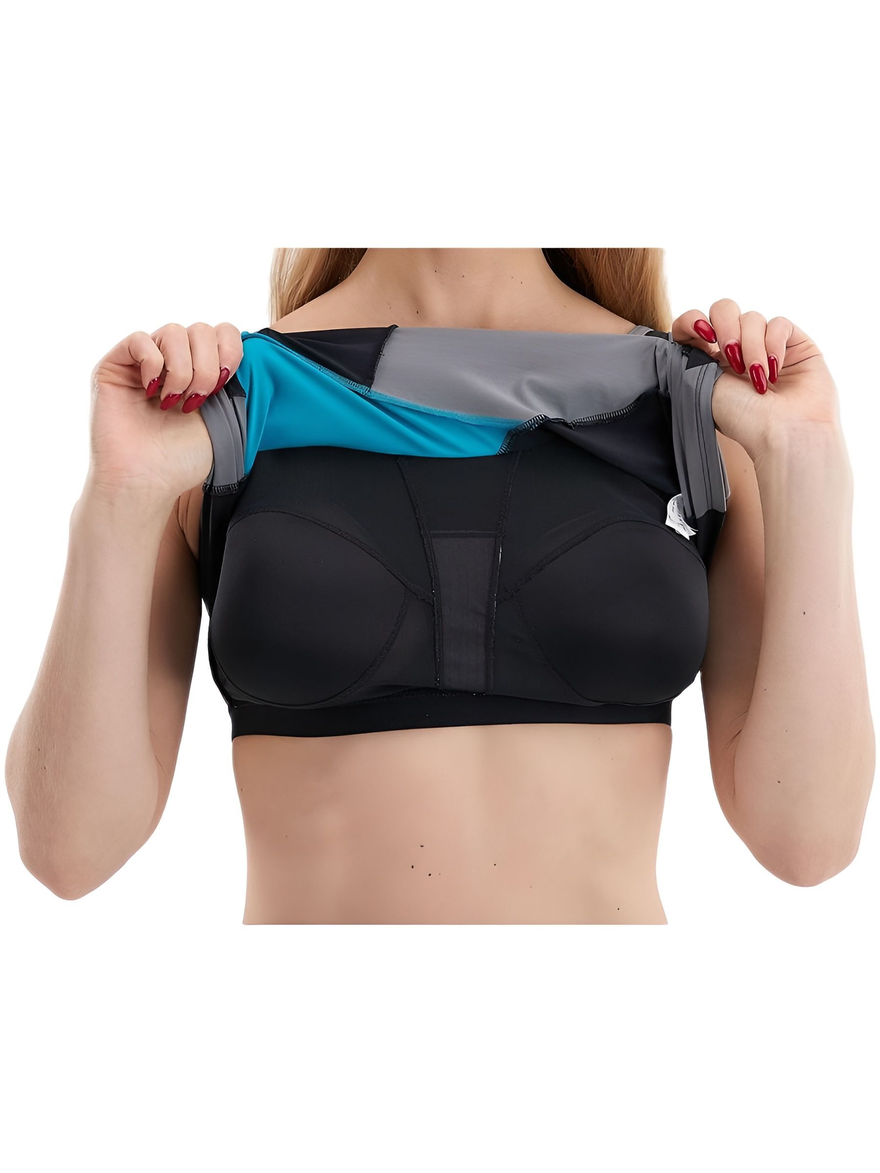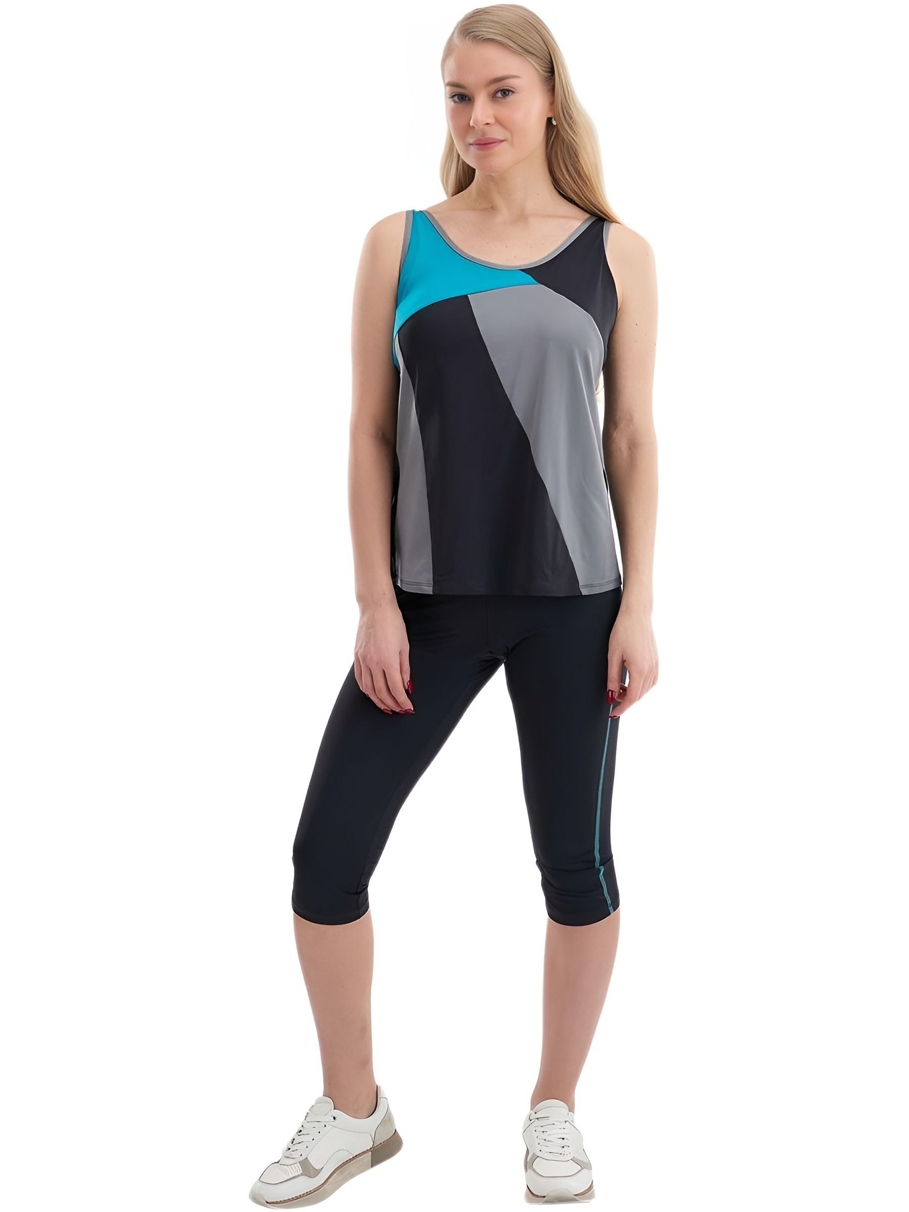 Спортивный Топ со встроенным бюстгальтером с двусторонними кармашками для фиксации экзопротеза или накладки молочной железы для женщин после операции на груди, цвет черный/серый/бирюзовый, размер M/46 RU.