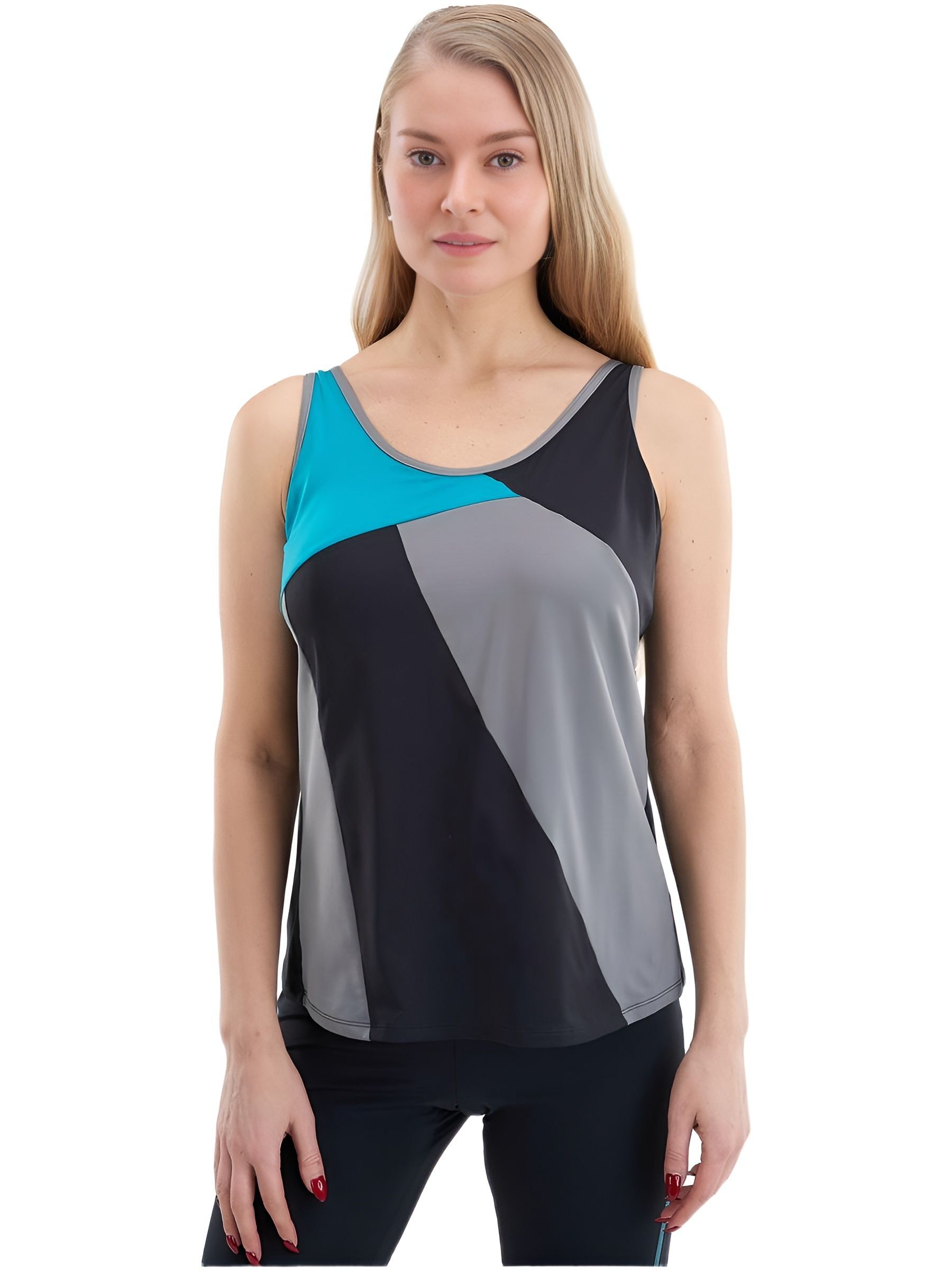 Спортивный Топ со встроенным бюстгальтером с двусторонними кармашками для фиксации экзопротеза или накладки молочной железы для женщин после операции на груди, цвет черный/серый/бирюзовый, размер S/44 RU.