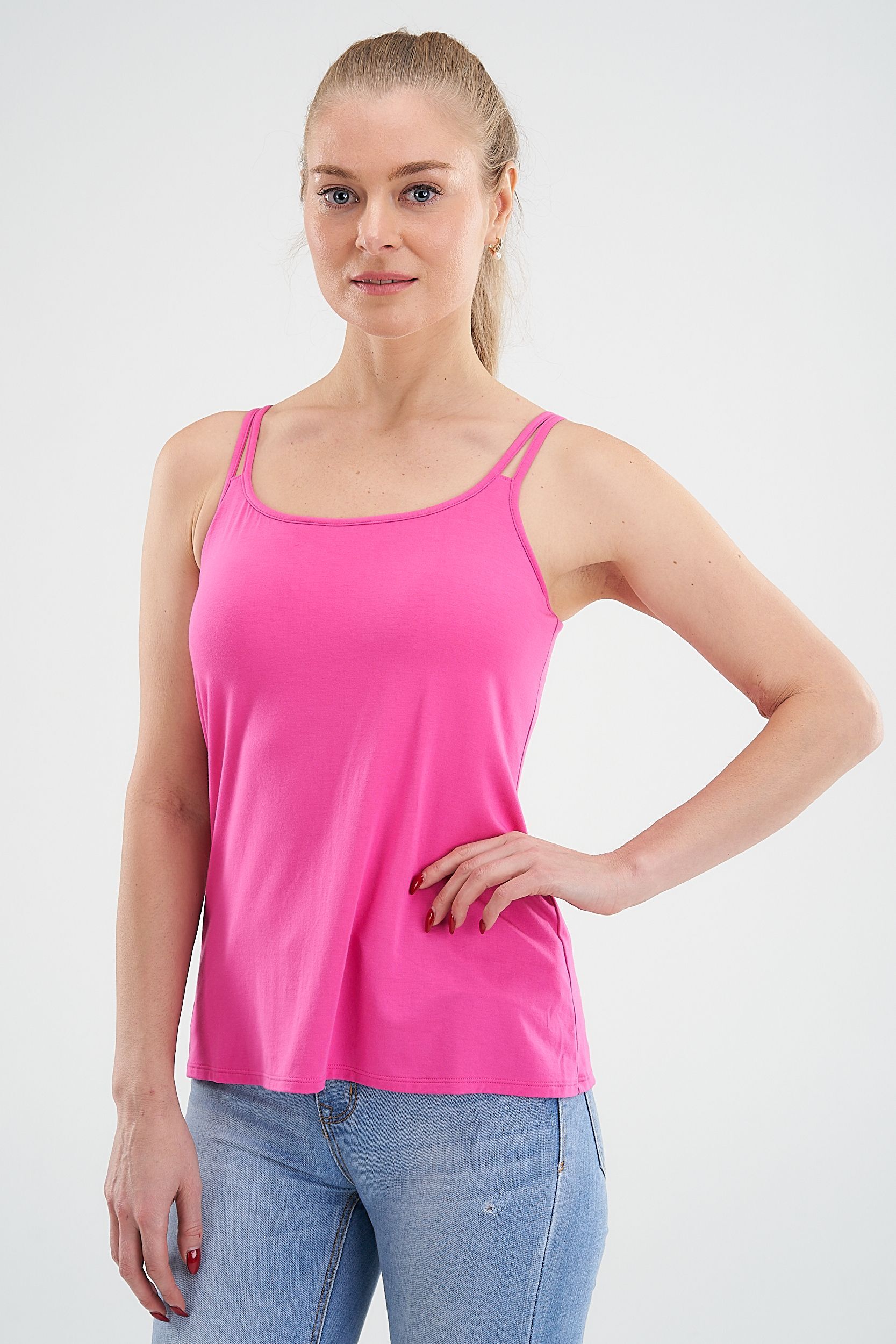 Элегантный легкий топ с вшитым бюстгальтером отлично сидит на теле, подчеркивая талию и бедра. Встроенный формованный бюстгальтер создает максимальную поддержку груди, а новая натуральная ткань Modal - экологически чистый материал, она не мнется, гигроскопична, мягкая и бархатистая на ощупь. Комфортный женственный и надежный топ Valletta займет достойное место в Вашем гардеробе!