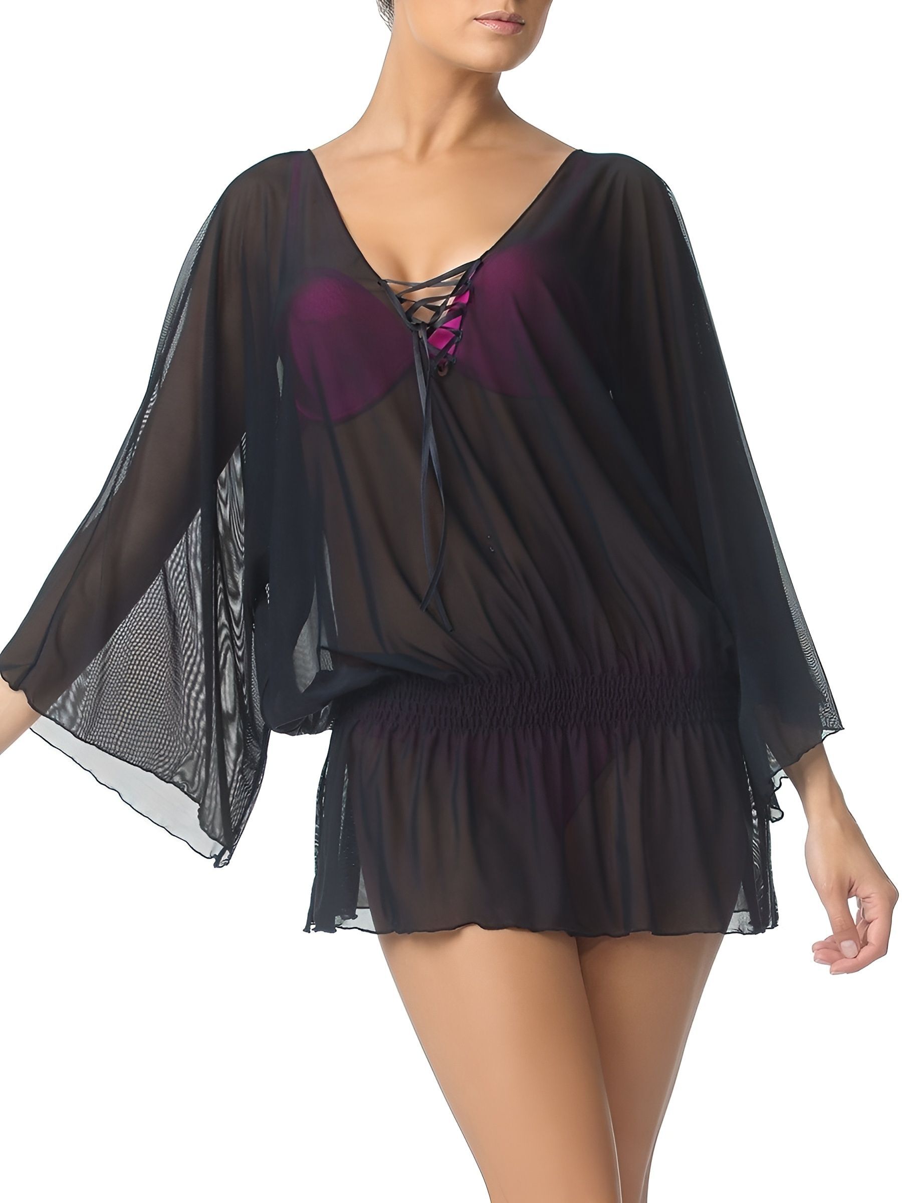 Туника изготовлена из микросетки, которая обеспечивает высокую степень защиты от солнечных лучей (SPF).